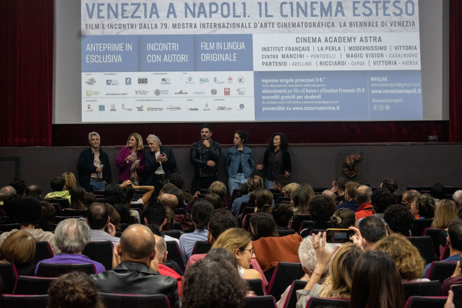 Il cinema come condivisione è da sempre il fulcro di “VENEZIA A NAPOLI. IL CINEMA ESTESO” e di quello che Parallelo 41 produzioni, che quest’anno compie 20 anni di attività, crea e cura per la città. Come sempre, nel suo senso esteso, l’evento è l’auspicio per la cultura che si diffonde e si sedimenta con una forza dal centro alle periferie e viceversa. E quindi oltre ai due quartier generali, Astra e Istituto Francese di Napoli e ai cinema del centro come il Modernissimo e il Vittoria, le proiezioni saranno anche a Ponticelli, Bagnoli, Aversa, Casalnuovo, Capua e, per la prima volta, anche ad Avellino.